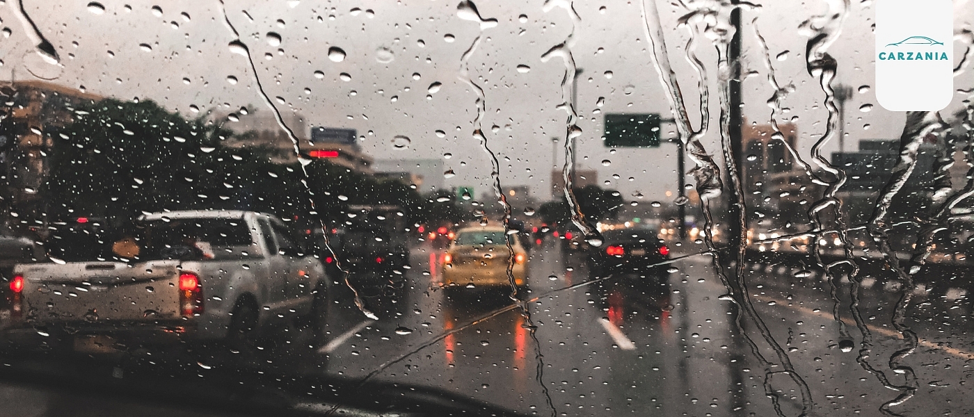 Check your tire tread depth — good tires are crucial for safe driving in heavy rain.